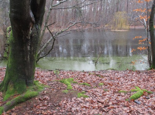 Wir queren auf dem Rückweg ein Verbindungsgewässer „Rüdigerau“ (??) zwischen dem Großen Fischteich und oberhalb liegenden Teichen – Entenflott-grün.