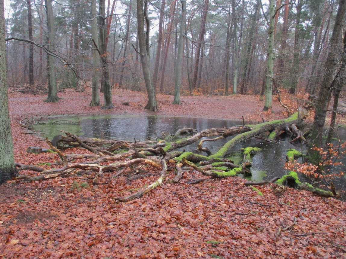 Die Bruch- und Sturzbäume liegen als besondere Strukturgeber bereits seit Jahren. Die anhaltenden Starkwinde bis Stürme seit Herbst konnten dem hiesigen Baumbestand offensichtlich nichts anhaben.