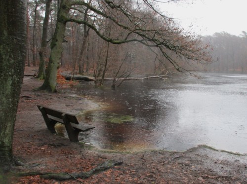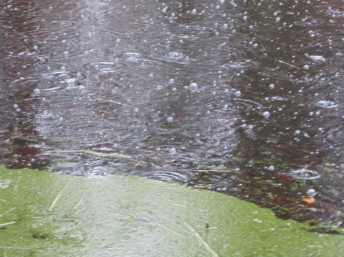 Schütteln die Baumkronen Wasser ab? – Nein, es beginnt, windgepeitscht, in ruhigen Bereichen „Blasen zu regnen“.