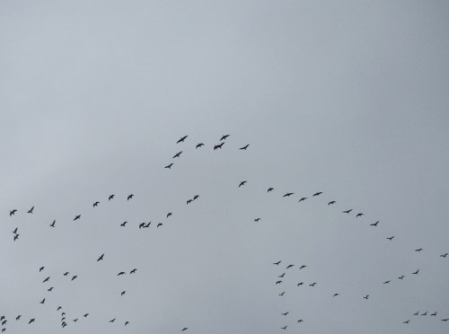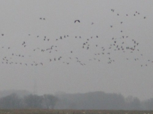 Auf den Elbdeich zuradelnd sehe ich querab Langer Damm vom Fährmannssand her Tausende Nonnengänse aufsteigen. Die Digicam bleibt drin – wer weiss, hat der Bauer die Vögel wieder aufgescheucht …, ich will nicht anhalten.
