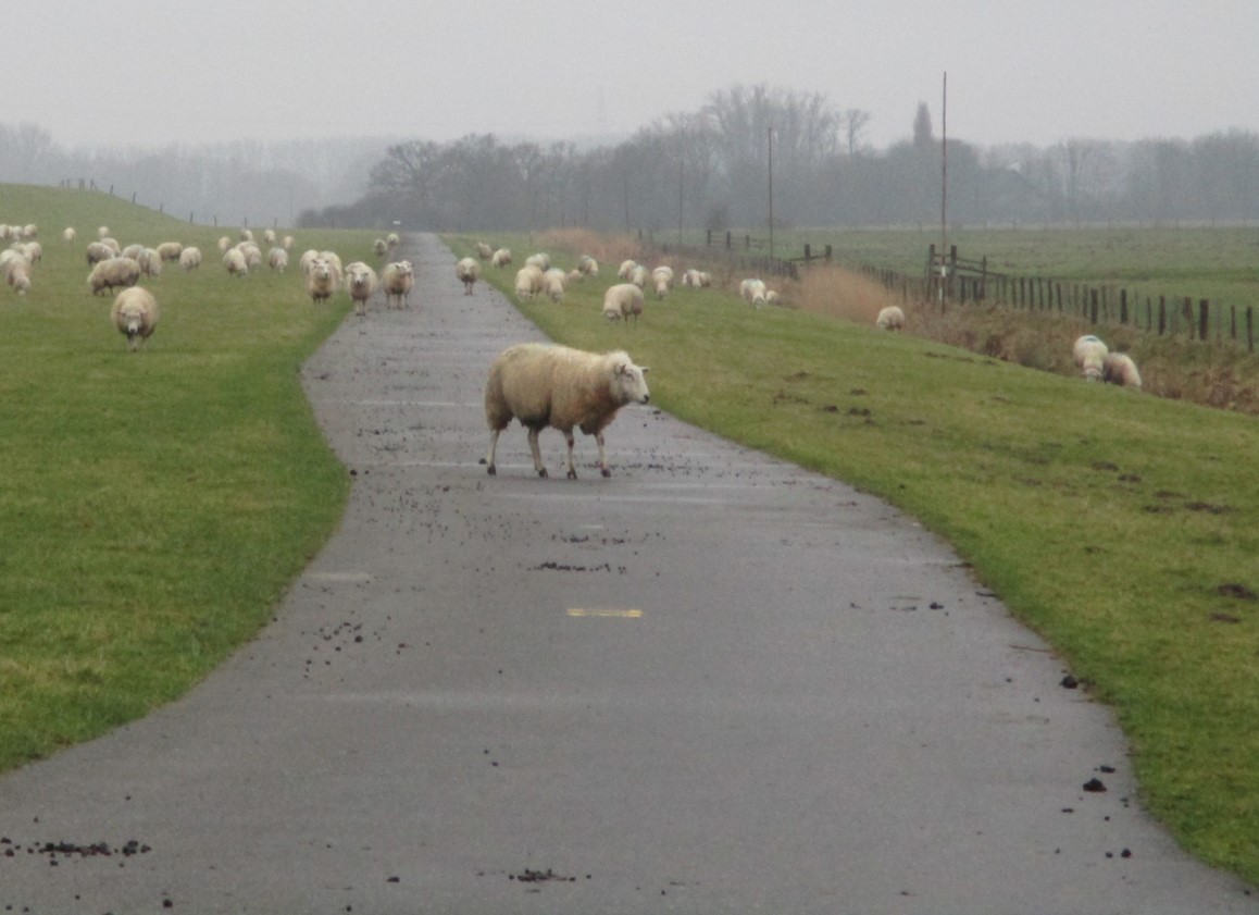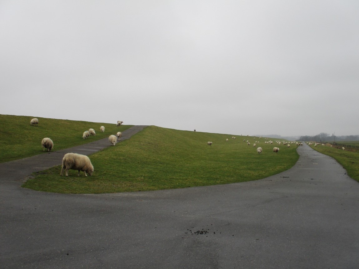 Ogottogott – die Schafe sind los! (Wie des öfteren erwähnt, nicht gezäunt wie in Niedersachsen am Deich)