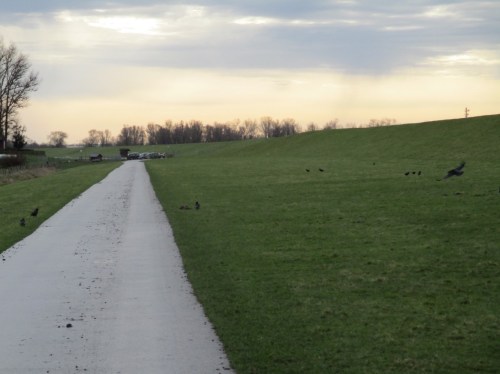 Saatkrähen sind so dicht am Deich das Jahr über eher selten anzutreffen, suchen ihr Futter anderswo.