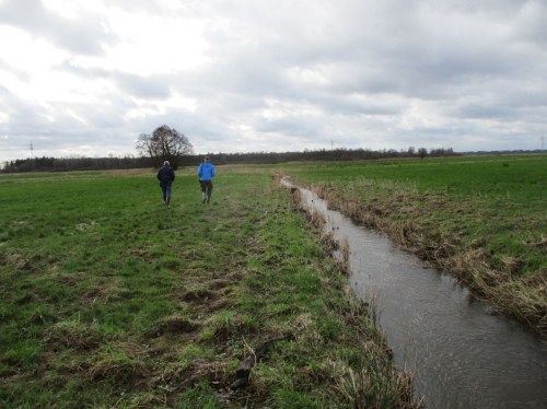 Wir erreichen die Rönne. Erstaunlich immer wieder, wie solch Bach in einer Landschaft ohne wahrnehmbares Gefälle turbulent fliessend seinen Weg sucht.