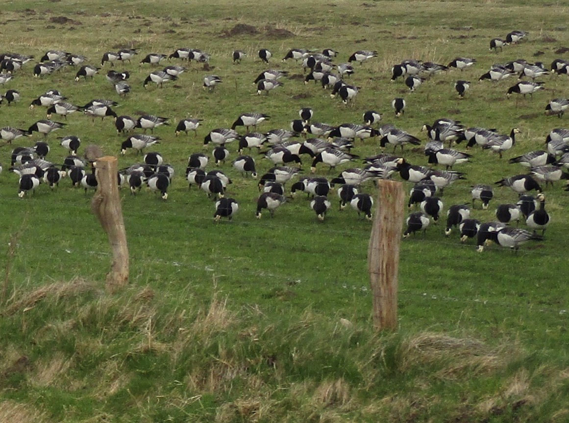 Der letzte Pulk Nonnengänse reagiert auf mein Vorbeiradeln dann durch Abwenden und leichtes Landeinwärtsstreben.