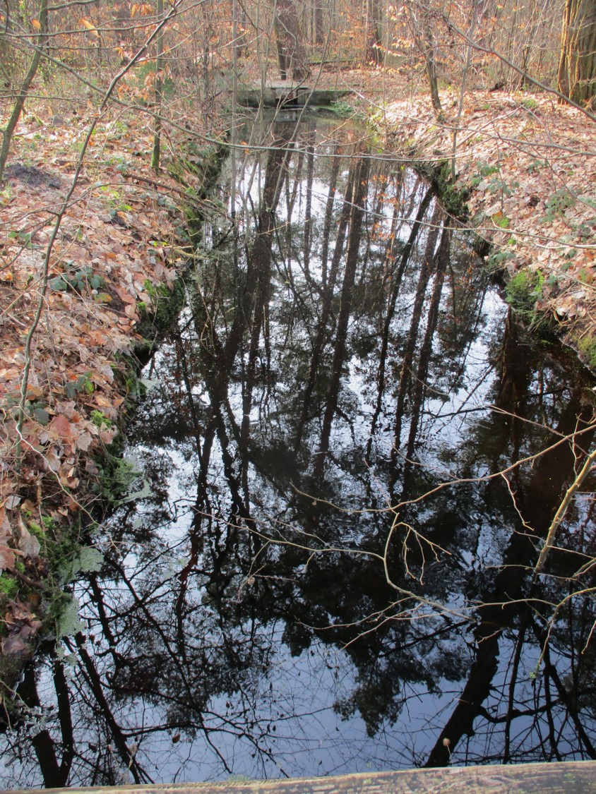 Schwarzwasser, glasklar, Kiefern, gespiegelt – nur noch wenig Wasser fliesst ab, entsprechend den seit einiger Zeit beendeten Regenmassen.