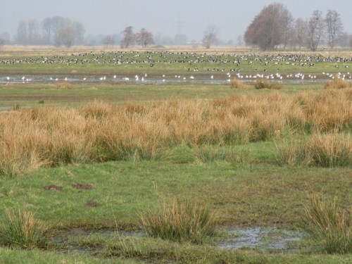 Nonnengänse und Sturmmöwen in der Wedeler Marsch.