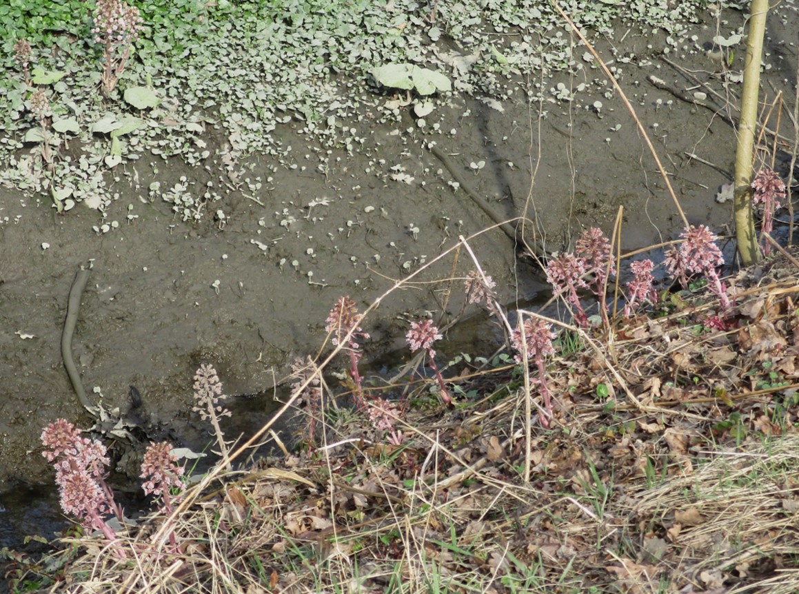 Pestwurzblüten an Tidegraben – die großen Blätter folgen später.