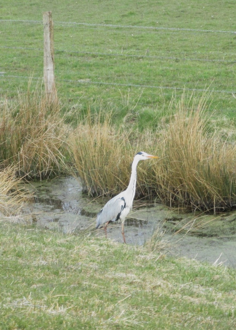 Der Graureiher stört sich nicht an mir, gleich nebendran im Deichfussgraben.
