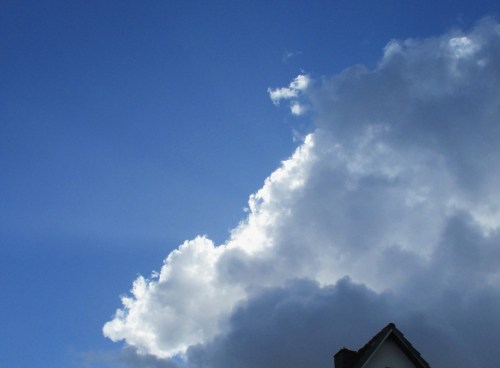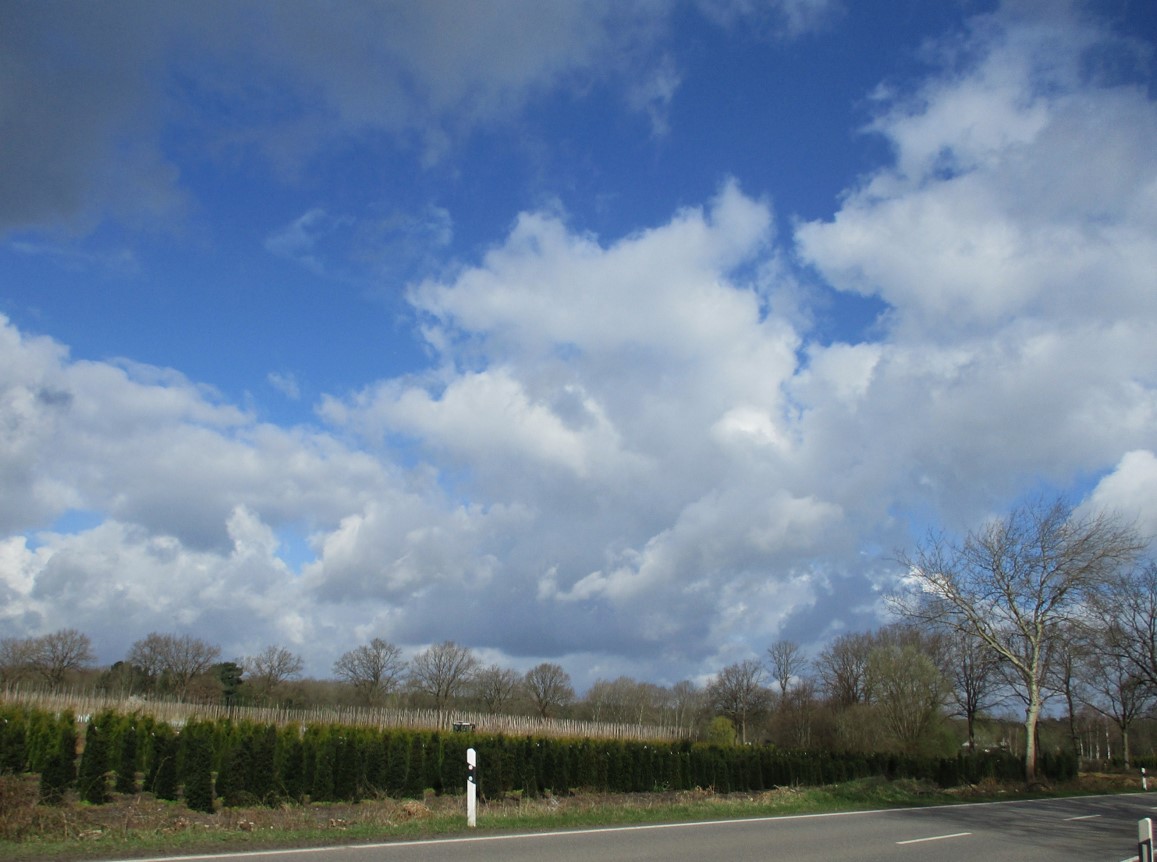 Am Himmel jagt es weiter. Unten befinde ich mich in gutem Windschutz, habe die Landesgrenze durchradelt, befinde mich wieder in SH.