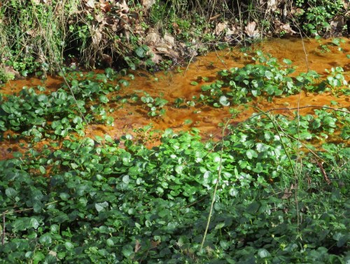 Entlang Wespenstieg – die Sonne lacht, Eisenocker und Scharbockskraut leuchten / glänzen um die Wette.