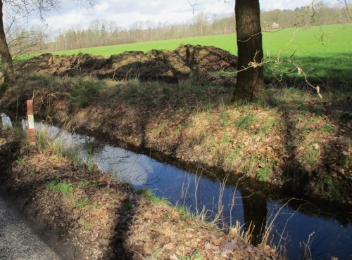 Entlang Graben mit Amphibienschutz – unmittelbar nebendran Organo-Abfall. Darf der das / wer darf das – vielleicht hier, hinter der Grenze, in SH?