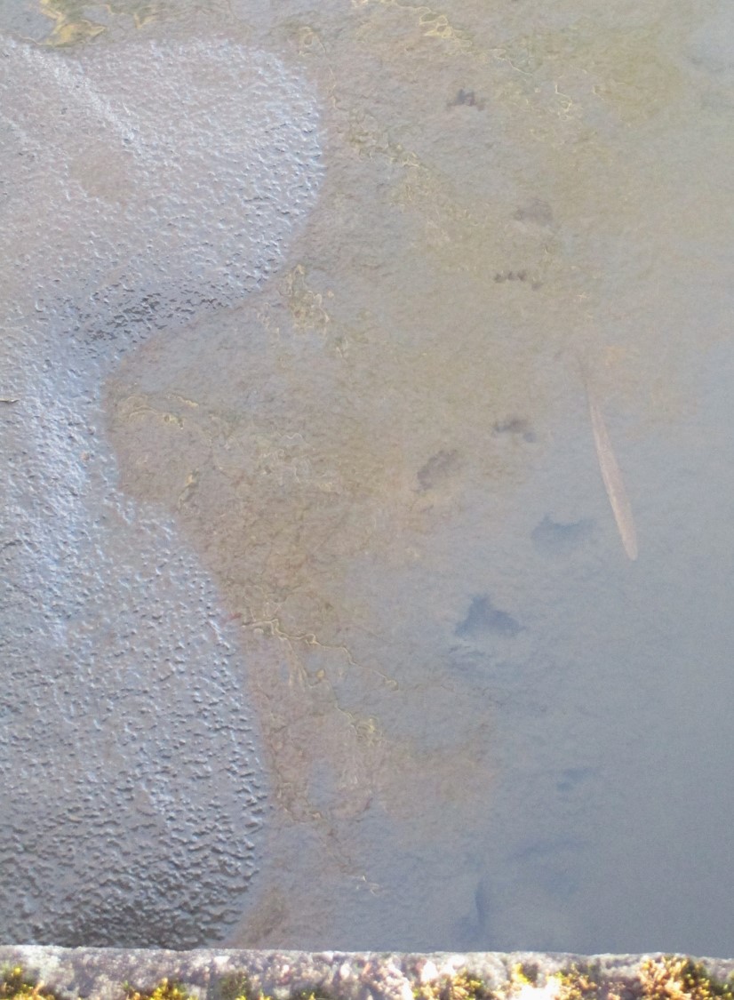 Abgesehen von freieren Gewässerrändern, trocken(er) fallenden Wiesen mit Algenwatten, ist dieser Schachtring eine gute Orientierung der allgemein sinkenden Wasserstände.