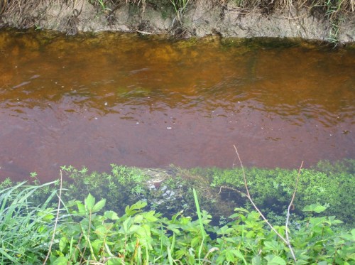 Am Brunnenschutzgebiet, Tidehochwasser im Bullenfluss – Weissdorn-, Pappelgrün und Marschwiesengrün.