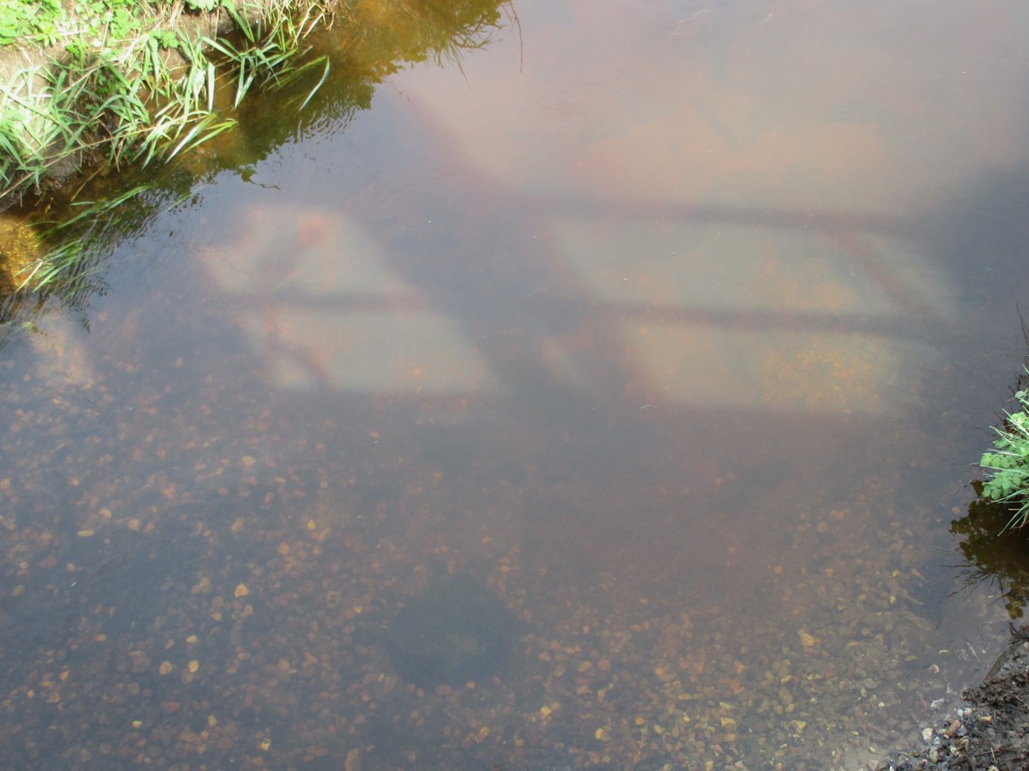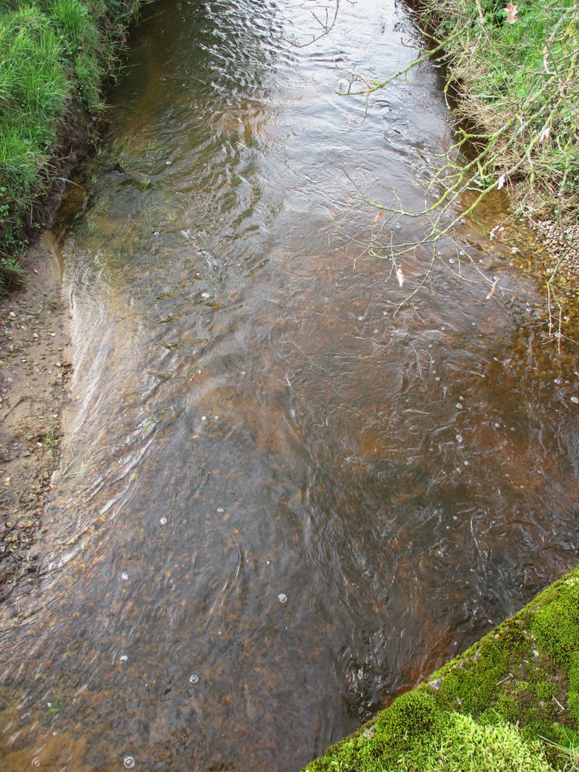 Bachab, auf von Hochwässern und laichenden Meerforellen unter der Überfahrt durchtransportiertem Kies sehe / erkenne ich zunächst nichts.