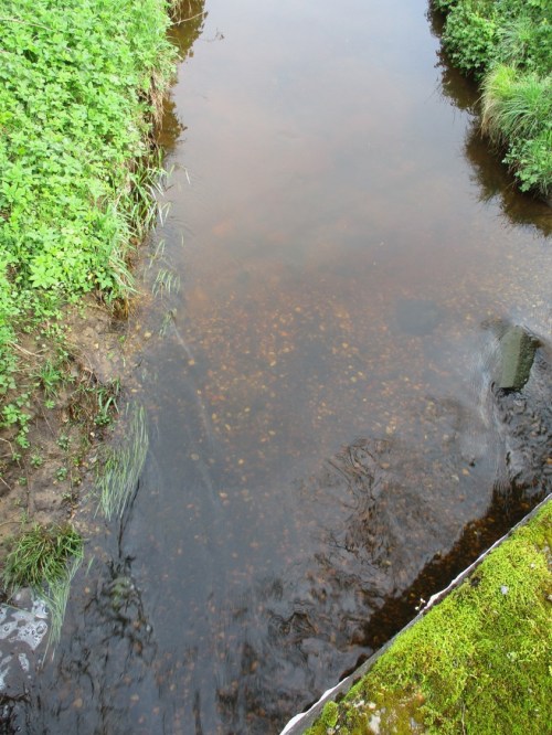 Und beim nochmaligen Gucken bachab sehe ich es nun: Auch das hier von Meerforellen im Winter angelegte Laichbett – Kuhle und Hügel – ist von Flussneunaugen belaicht worden.