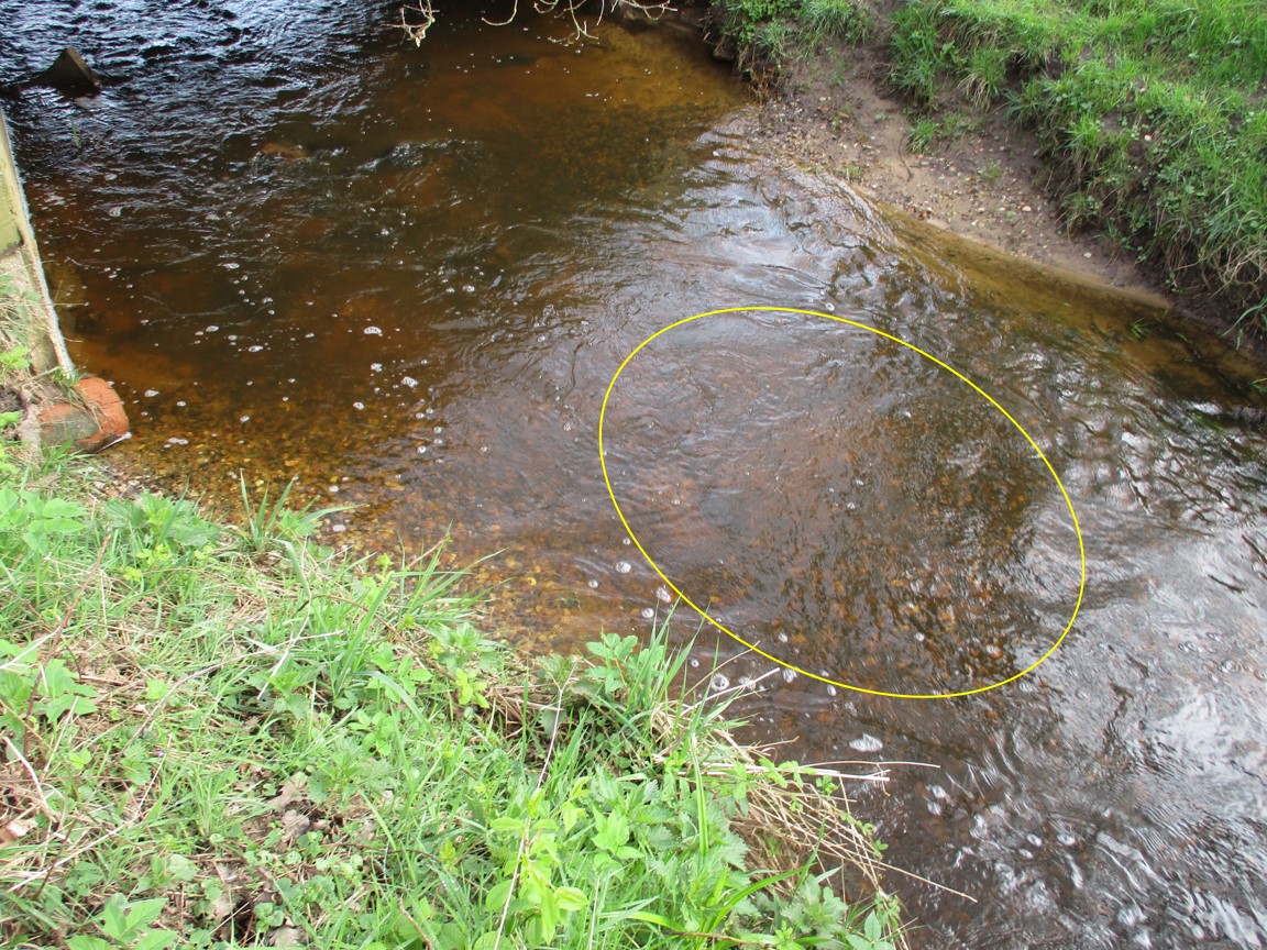 Ein Stück bachauf – auch der vor Jahren als „Notkies“ für laichwillige Meerforellen eingebrachte Unterwasserkiesberg wurde von den Flussneunaugen genutzt.