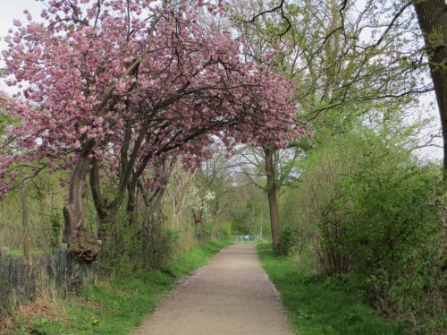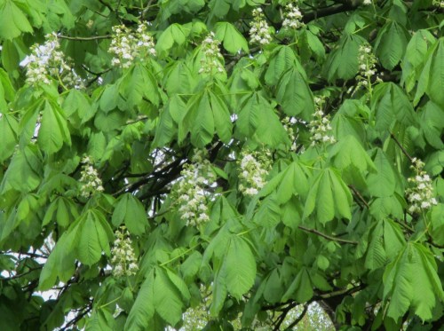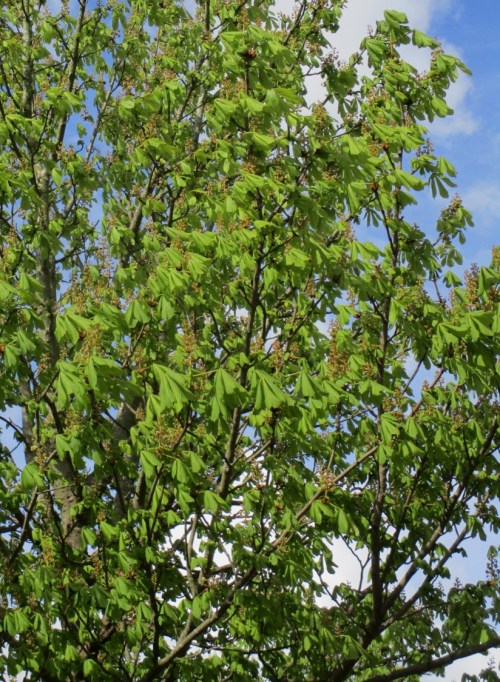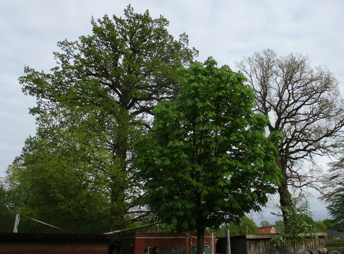 Monster-Theatervorstellung einer Abschlussklasse war Anlass des Grenzübertritts – super gelaufen, begeisterter Applaus! – Eine schicke Grünkulisse der Schule: Kastanie, belaubt, Eiche, noch kahl, andere voll in Blüte.