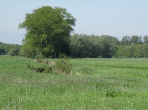 Blick ab Mitte der Kurve bis über das reaktivierte Altlaichbett hinaus.