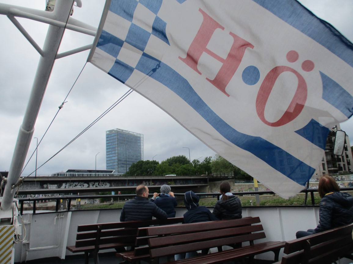 Ich sitze draussen vor der Kajüte – Staudruck lässt den Stark- und Fahrtwind nicht ganz so krass erscheinen.