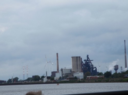 Die weissen Packen am Ufer (mehrere hunderttausend t) sind deutsches Holz, wie wir hören. Der leichtere Hausbau in den Sturm-durchzogenen USA verlangt nach neuem Qualitätsbauholz.