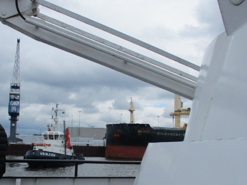 Anderswo prägt andere Nutzung das Bild. – So ein Hochmonster musste wohl jede (Hafen?)Stadt irgendwann mal bauen.