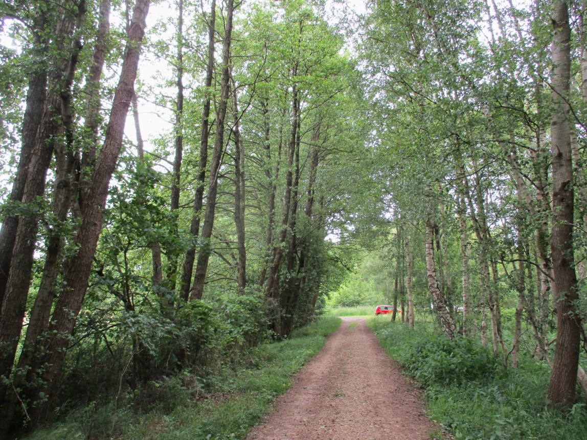 Eine abwechslungsreiche Fahrt, hier in lichtem Schatten, führt uns von Moränenhöhen in die flache Oberalsterniederung.