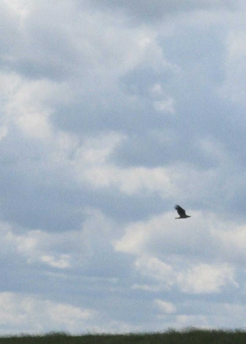 An der Zaunpforte Fährmannssand angekommen, werden neu eintreffende Radler unruhig. Da fliegt etwas Dickes, nicht weit / hoch über uns heran.