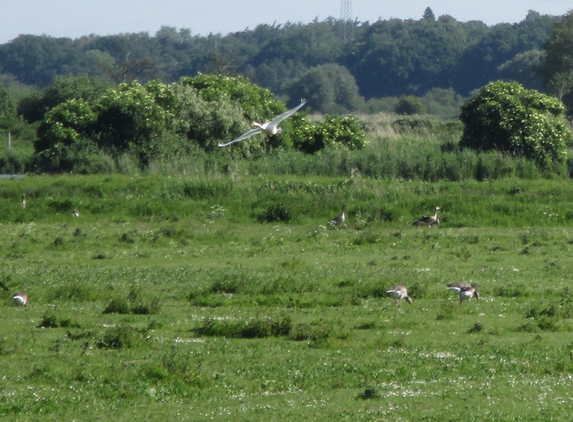 Querab Giesensand ist die Weide ziemlich kahl. Gänsetrupps lagern zwischen einem Teil der Riesenherde.