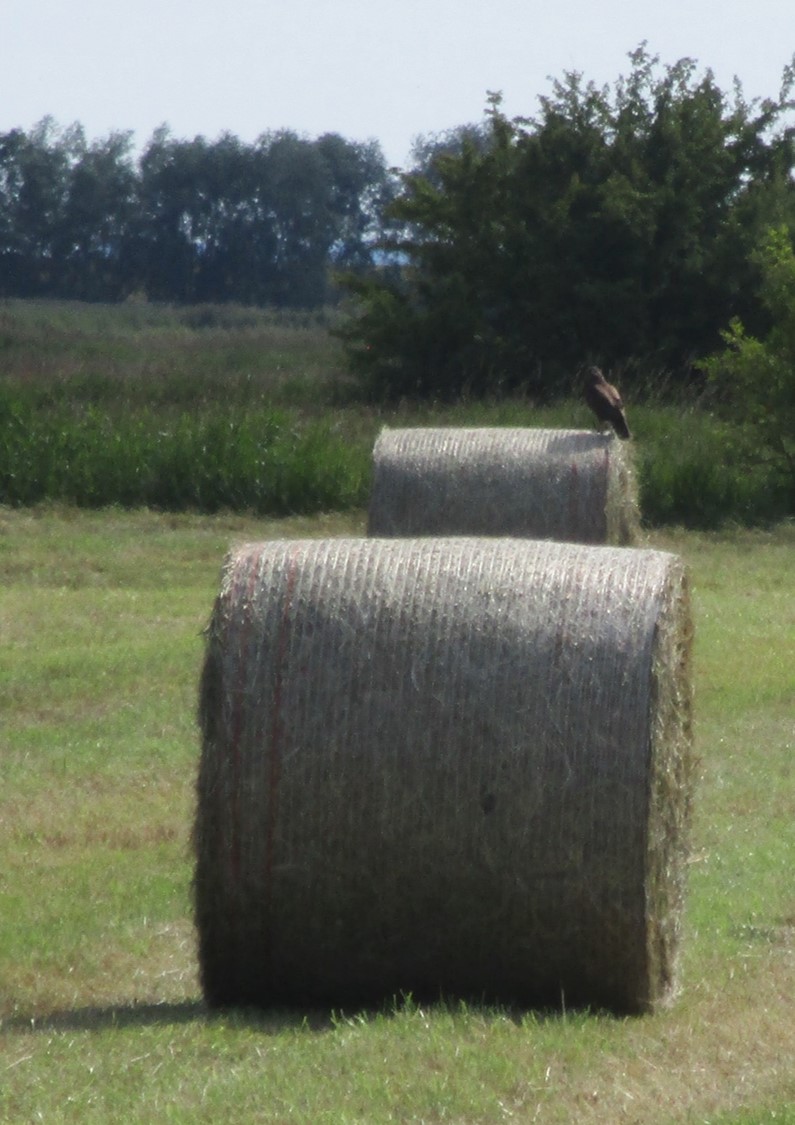Rundballen werden auch in Folie verpackt. Diese, selbstverständlich die anderen auch, eignen sich trefflich als Schattenspender.
