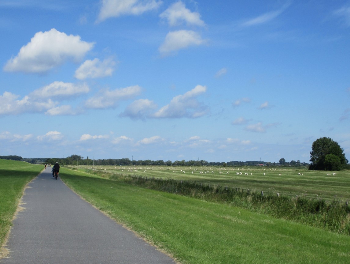Aus den beiden Fotos kann auch der Binnenländer den Vorteil des Marsch- gegenüber dem Geestbauern erahnen. Insbesondere in trockenen Jahren stellt das zweimal am Tag hoch einstauende Flutwasser (so sich die Fläche denn im Süßwasserbereich der Elbe befindet) stete Wasserversorgung sicher – gute Bedingungen für mehr Ernten als anderswo.