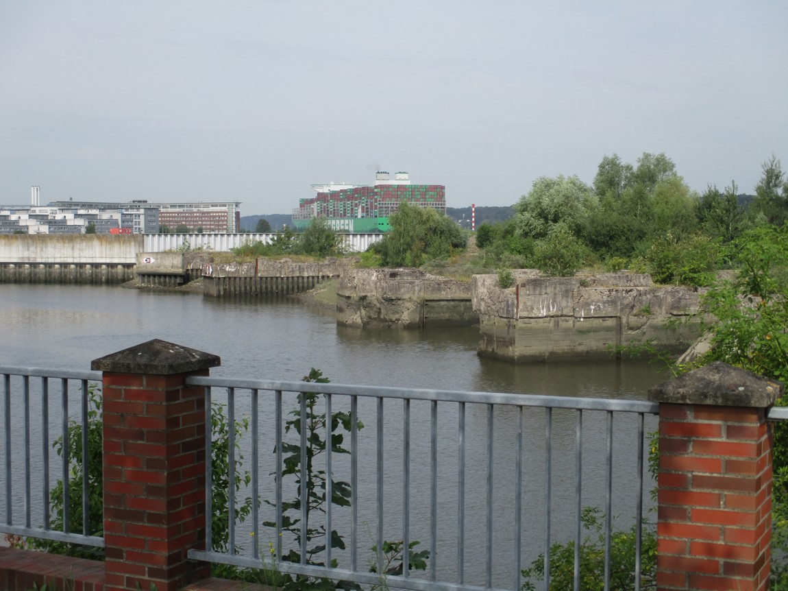Wir radeln am Seglerhafen entlang (kein Foto von den Booten). Massen Restbeton zeugen von der Vergangenheit dieses Gebiets – U-Boot-Bunker.