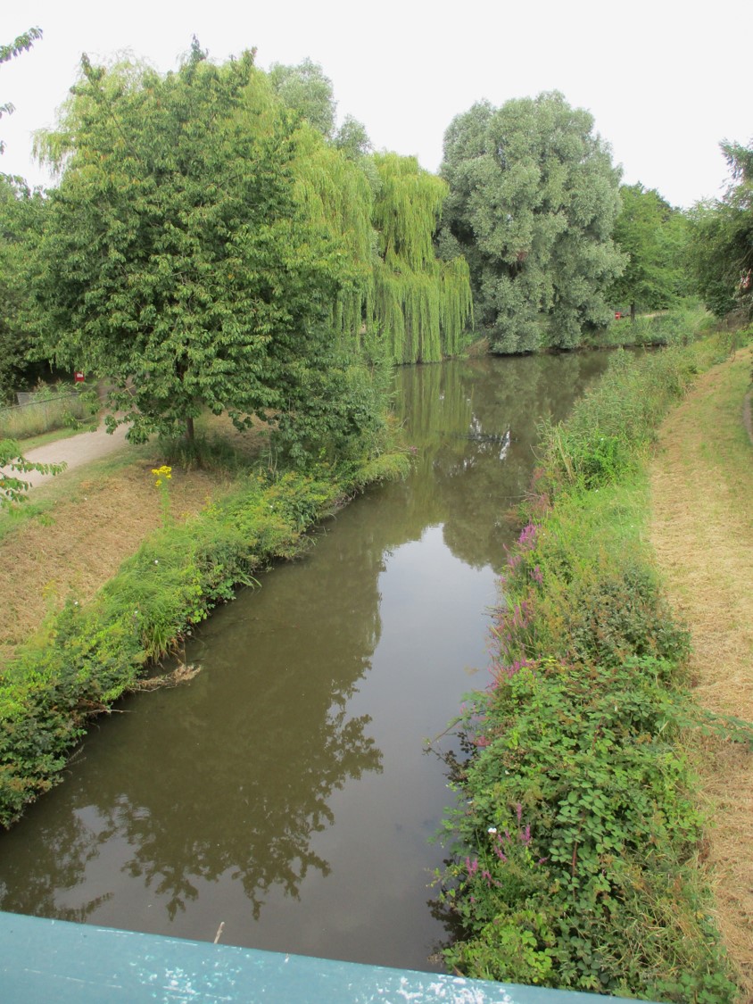Durch ein beschauliches Wohngebiet radelnd – Zone 30, wie sich das gehört – queren wir das Finkenwerder Fleet, …