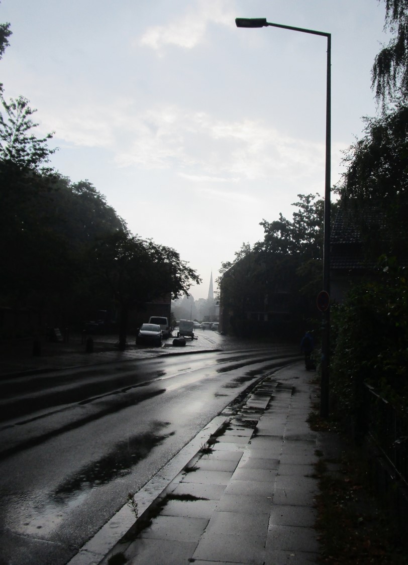 Wir wandern einen Bus Richtung S Wedel nahe unserem Zuhause an. Das Wetter hat sich einen fetten Schauer dafür ausgesucht.