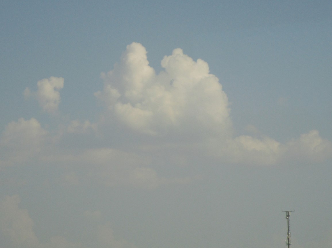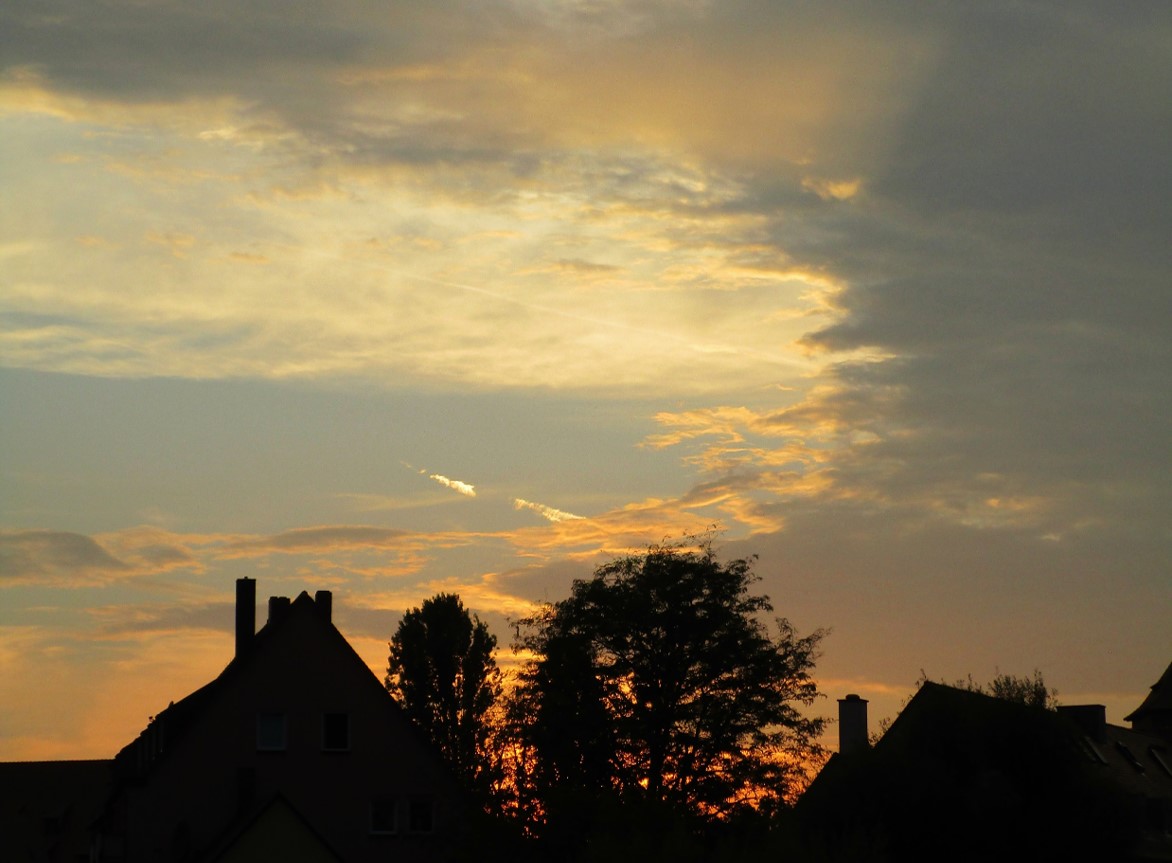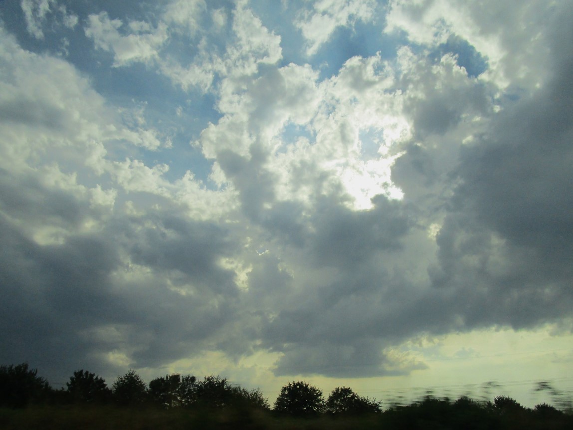 Richtung Leipzig zeigt sich bodennah eine dicke Grauschicht. Drüber bilden sich, teils mit gewitteranmutenden Türmen, die unterschiedlichsten Wolken.