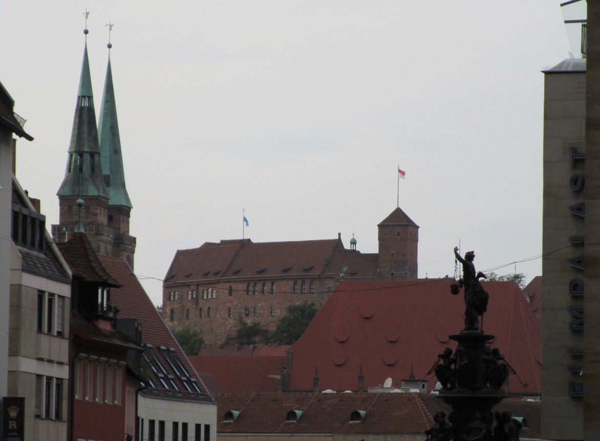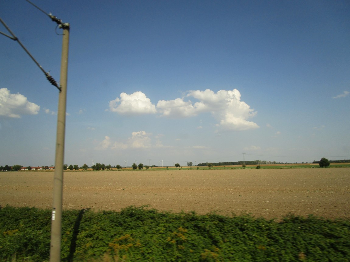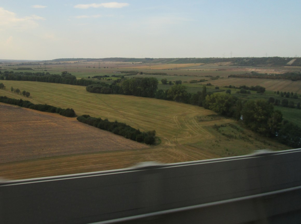 Jetzt aber – im ICE, auf gen Süden, Nürnberg ist unser Etappenziel. Am Horizont der rechten Bildhälfte: Hafencity im Bau, Kurzer Olaf im Baustopp.