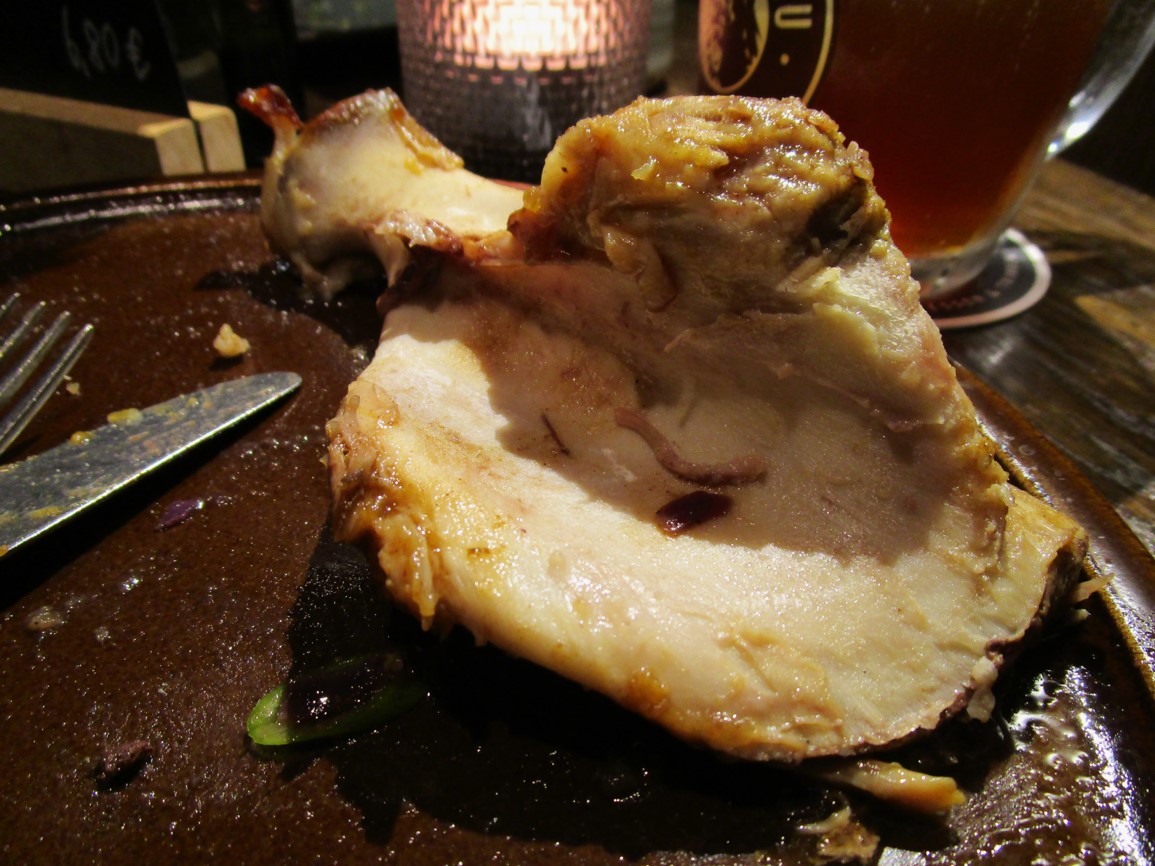 Mehr aus Verlegenheit kam dann auf der Rückreise in Würzburg noch ein Schäufele auf den Tisch – zu beachten: Flaschenbier! Wir befinden uns in einer Weingaststätte.