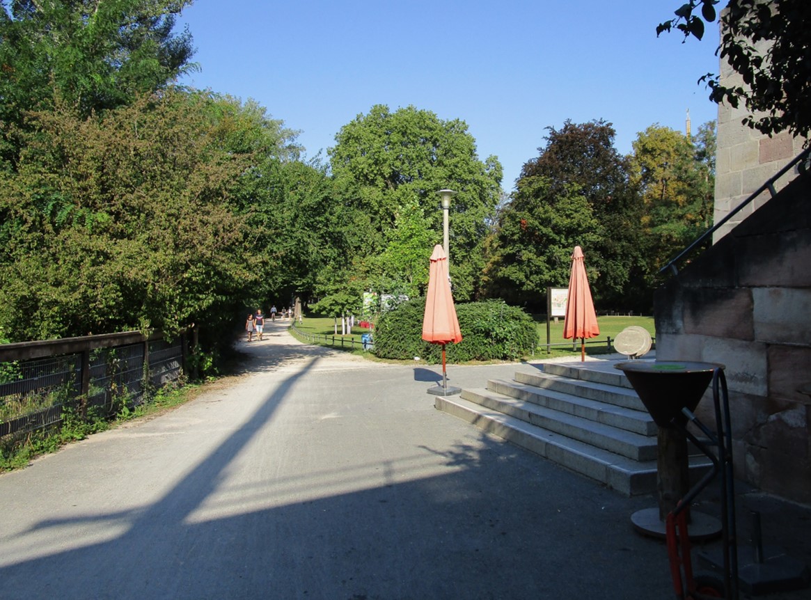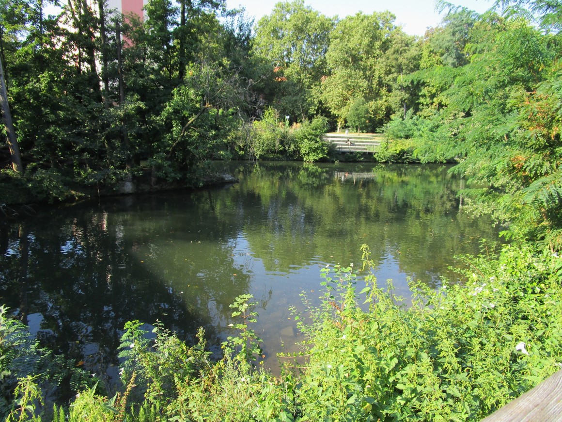 Wo wir einmal in der Ecke sind, wollen wir wissen, wie sich die Pegnitz ausserhalb der Stadtmauern darstellt. – Grün!