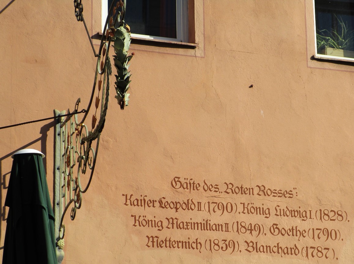 Schickes Fachwerk auch am Weinstadel, links der Wasserturm – wir haben Henkersteg und -brücke gequert.