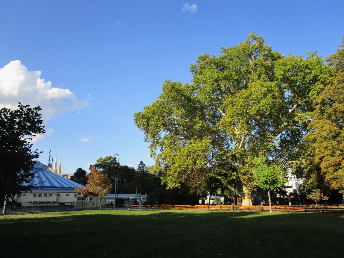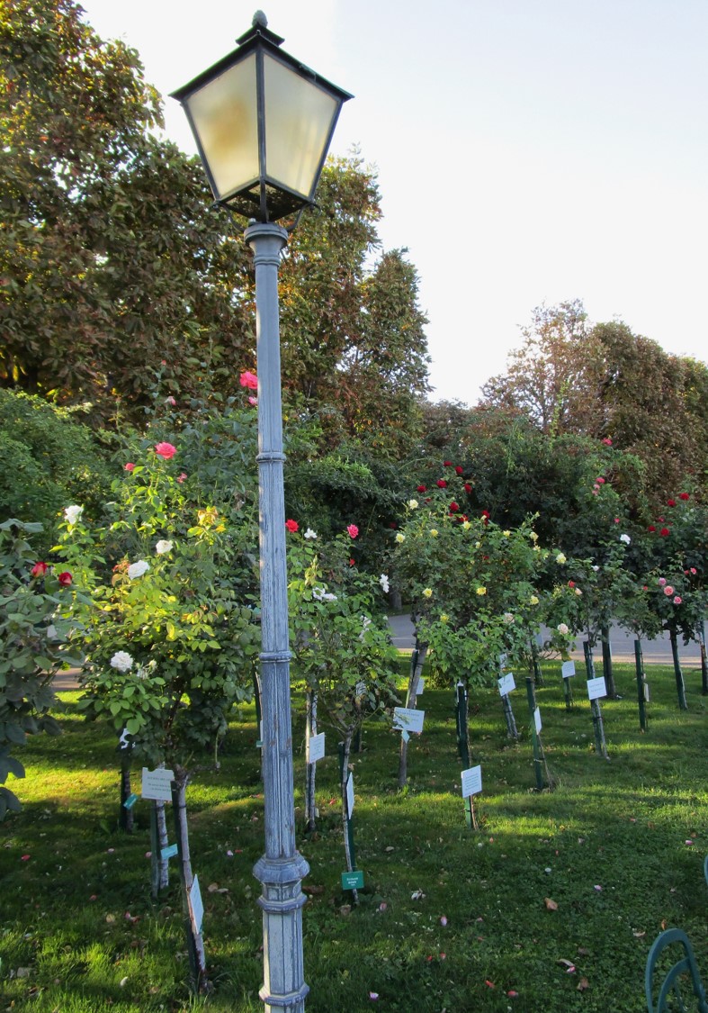 Wir haben den Universitätsring gequert und befinden uns im Volksgarten. Die umfang- und sortenreiche Rosen-Teilfläche ist – neu? – mit persönlichen Schildern besonderer Anlässe gekennzeichnet. Wir nehmen an, dass dies Patenschaften für die jeweilige Pflanze kennzeichnet.