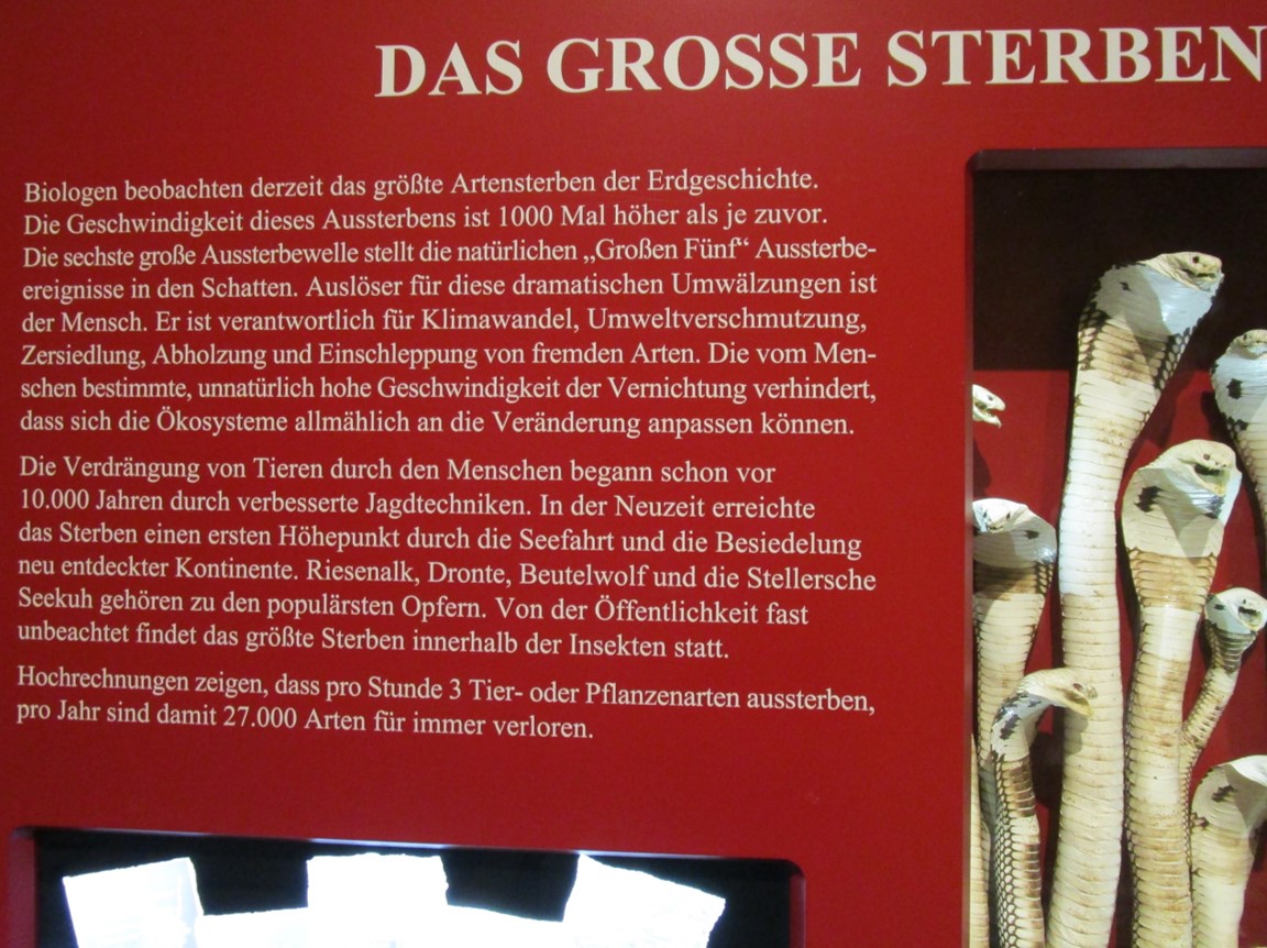 Gut ist es, wenn die alten Sammlungen überprüft, ggf. anders ausgestellt werden. – Die umfangreiche Fischsammlung (ohne Fotos) erinnert – auch wegen erneuerungsbedürftiger Exponate – doch sehr an Vergangenheit / Vergänglichkeit.