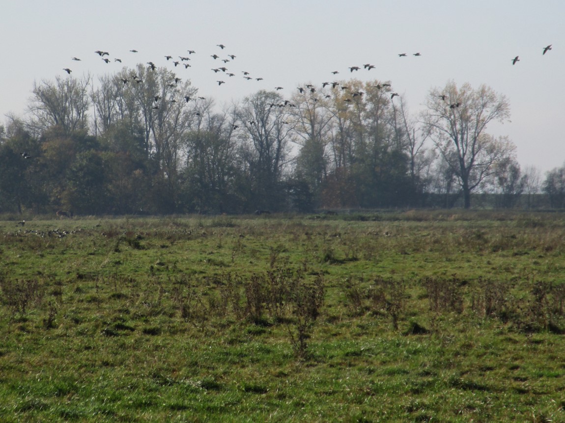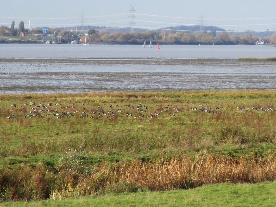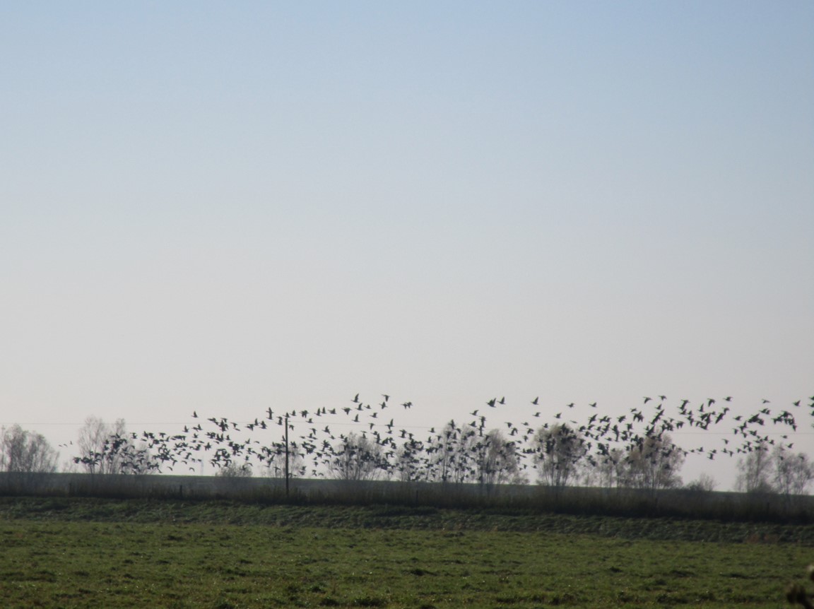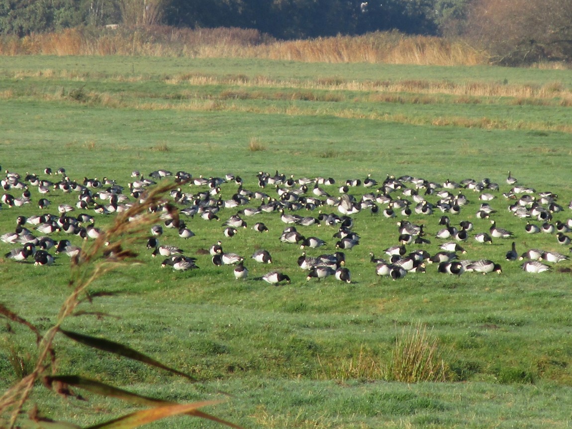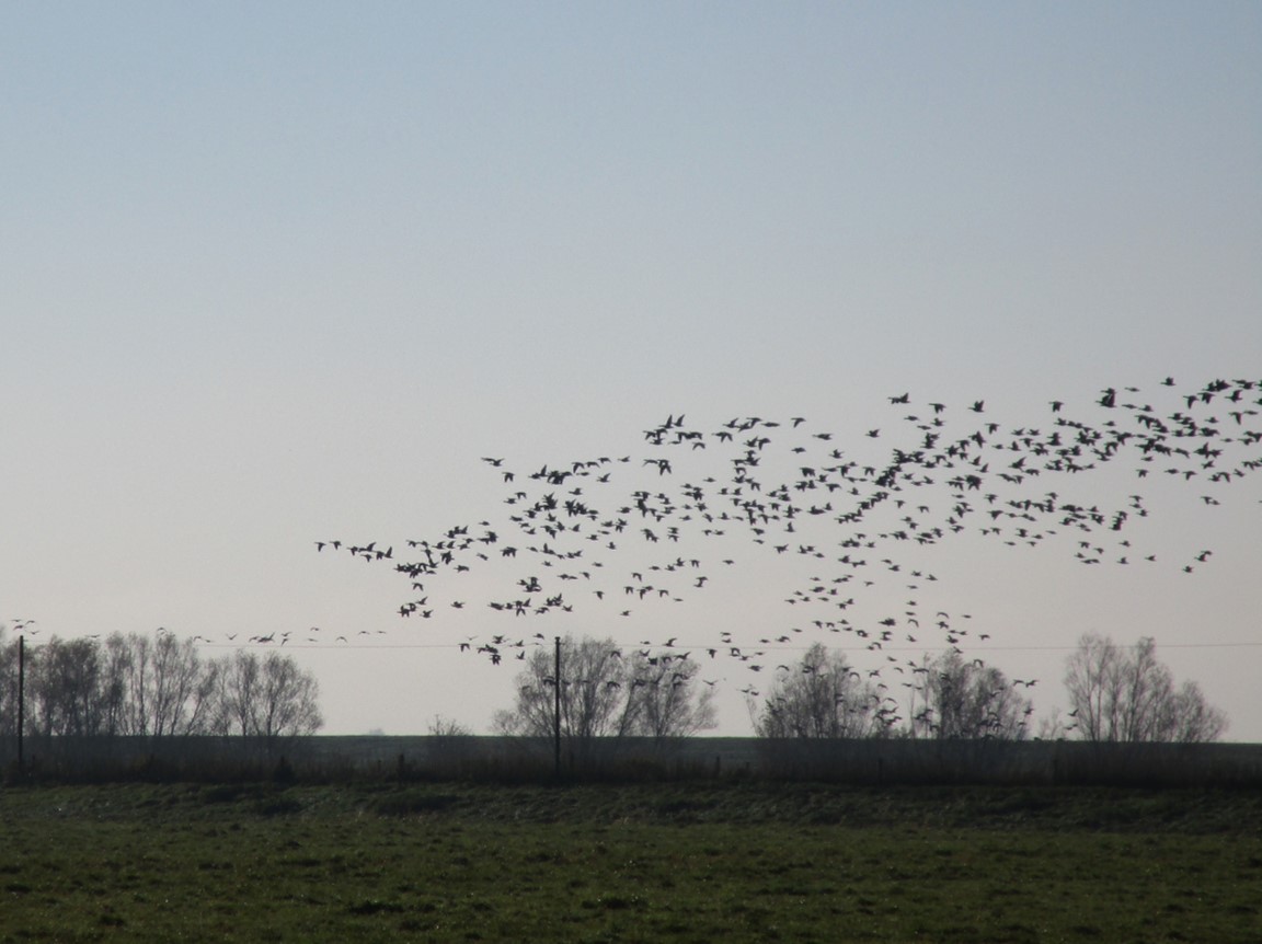 Da sitzt wieder so ein Tausender Nonnengänse. Wir bilden uns angesichts lockeren Schwarms fast ein, dass die Tiere von der Vogelgrippe gelernt hätten.