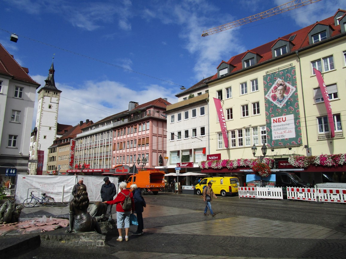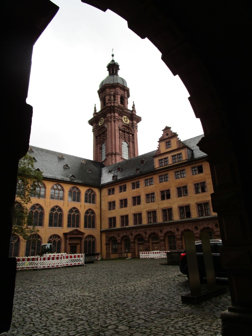 Der Tag schreitet voran, wir schlendern nach dem Besuch im Grün der Würzburger Residenz von der Alten Universität Richtung Mittagessen.