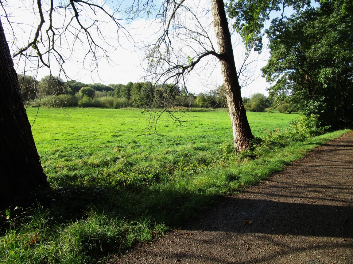 Offenbar findet ein Nilganspaar geeignete Dauerunterkunft auf dieser Wiese. Nebendran ruht (?) eine Gruppe Ringeltauben.