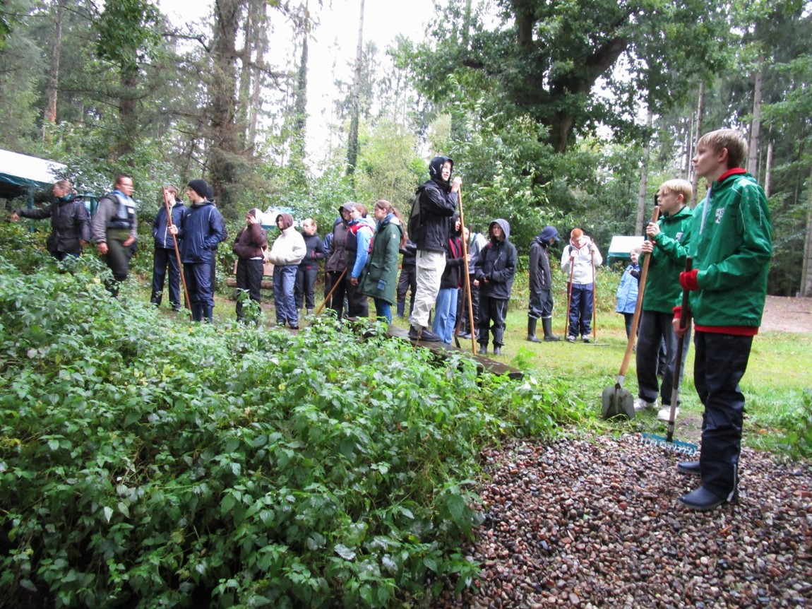 Die Gruppe wird aufgeteilt und in Arbeitsstärken von ca. 8 Personen an ihren jeweiligen Positionen eingewiesen.