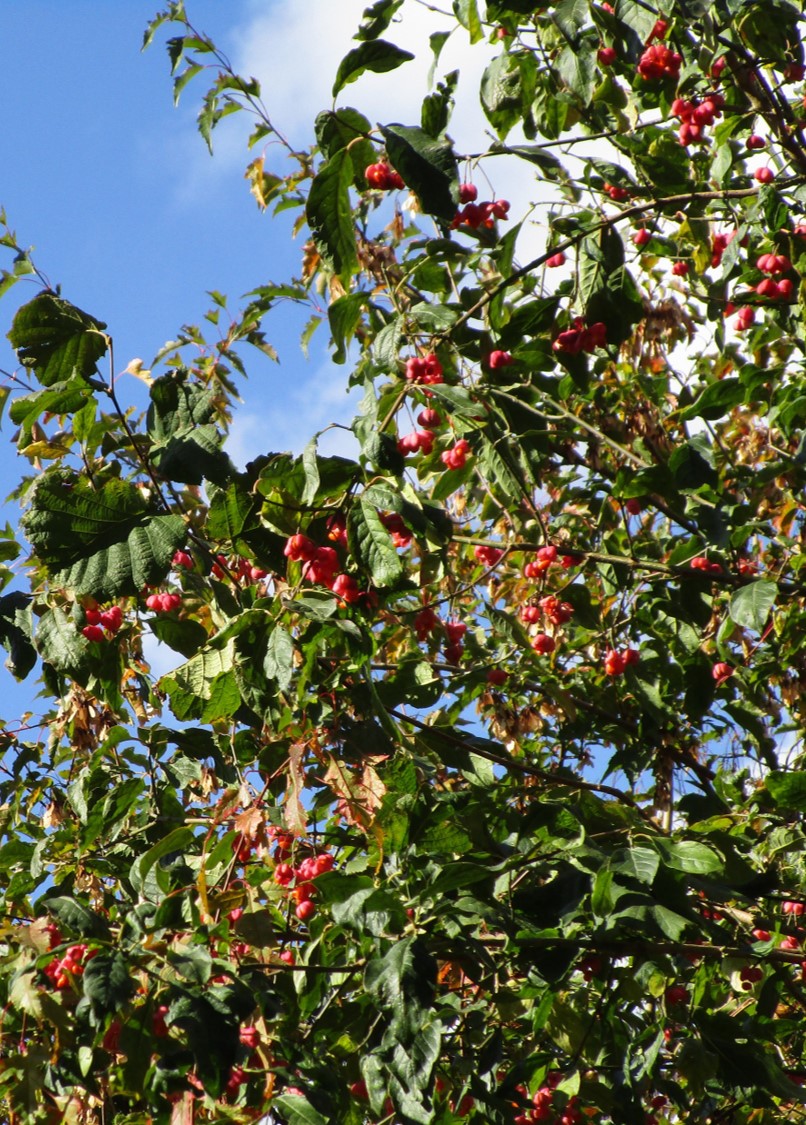 Gegen das Intensivrot der – sich nach und nach öffnenden – Pfaffenhutsamenstände kommt so schnell nichts anderes an.