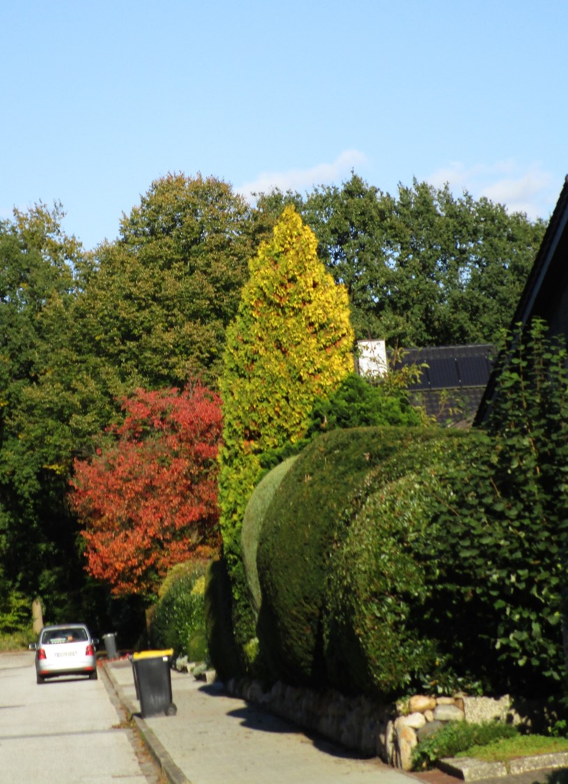 Bei Wind und Wetter, ggf. einstellige Temperaturen, fallen die Kirschblätter leider allzu schnell ab. Das intesive Rot im Straßenbild ist nur von kurzer Dauer.