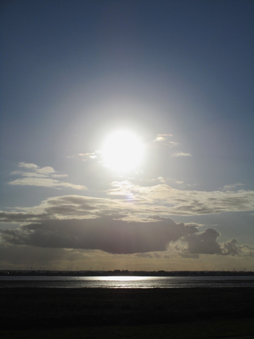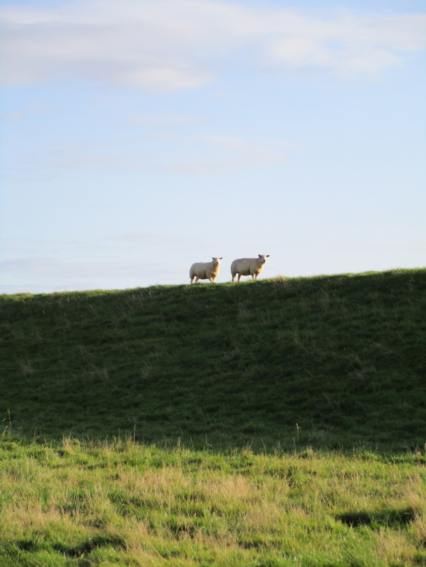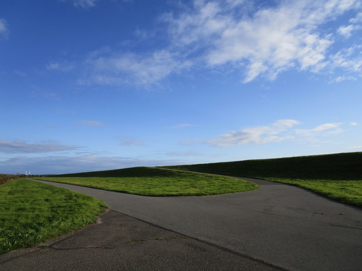 Elbdeich Hetlingen – die Sonne steht noch hoch am frühen Nachmittag, nur die Deichflanke liegt im Schatten.