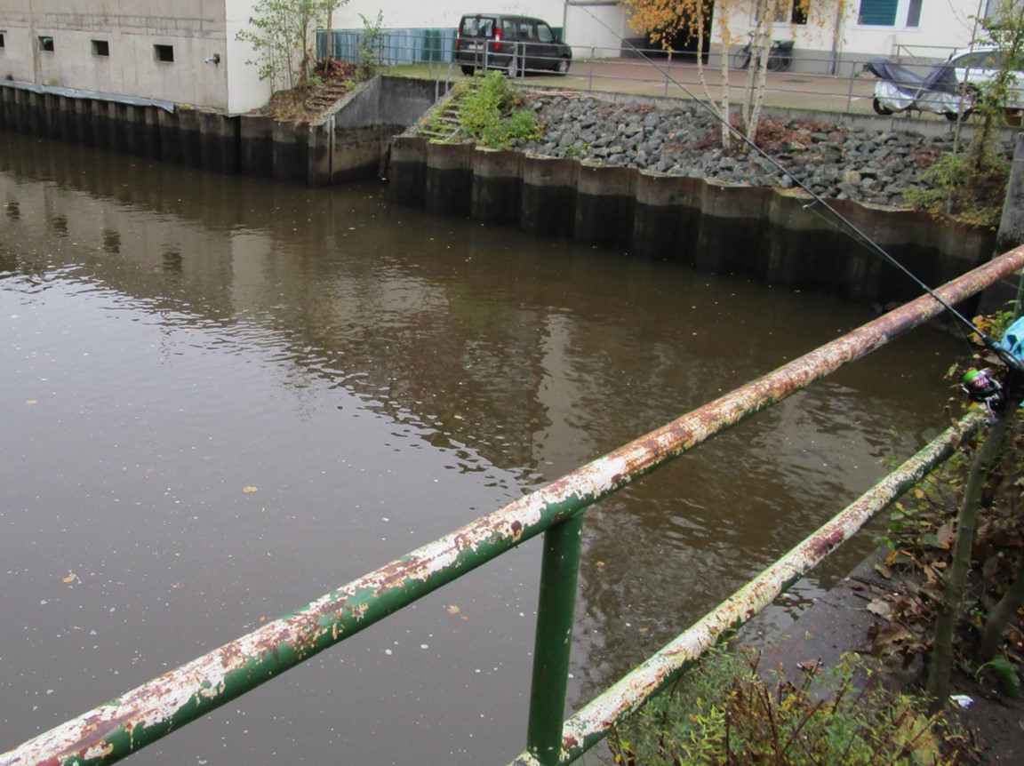 Besteht etwa hier, mit Beginn „der freien Strecke“ („flußabwärts der ehemaligen Wassermühle Piening am Mühlendamm in Elmshorn“) KEIN Schongebiet am Wehrhindernis ? ! ?