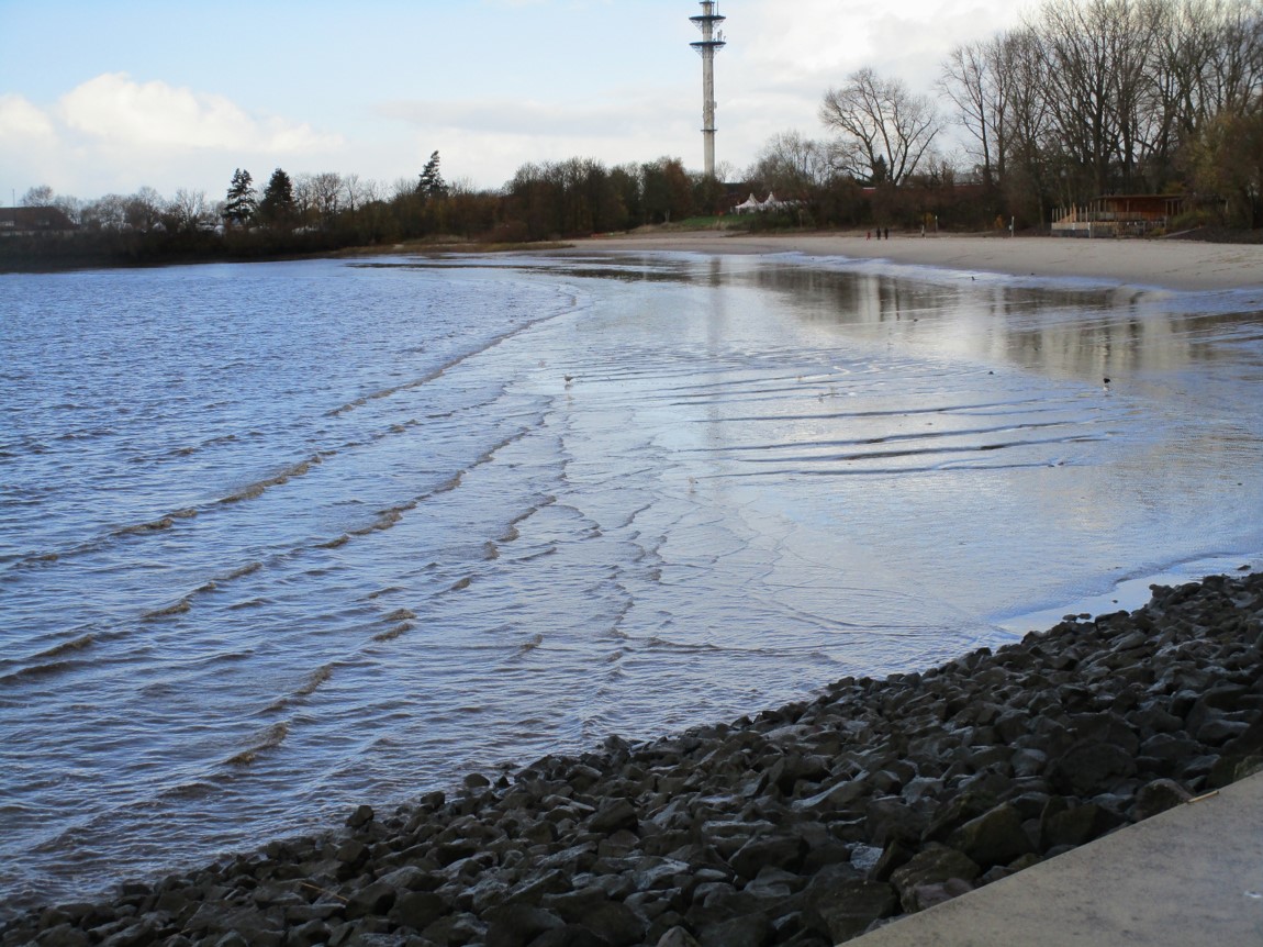Auflaufende und Querwellen auf dem Watt vor dem Sandstrand Wedel – weiter geht`s zum Hamburger Yachthafen.