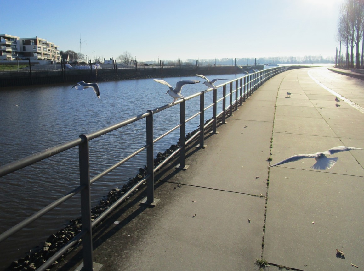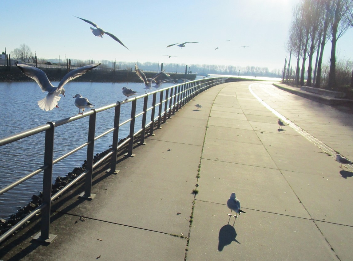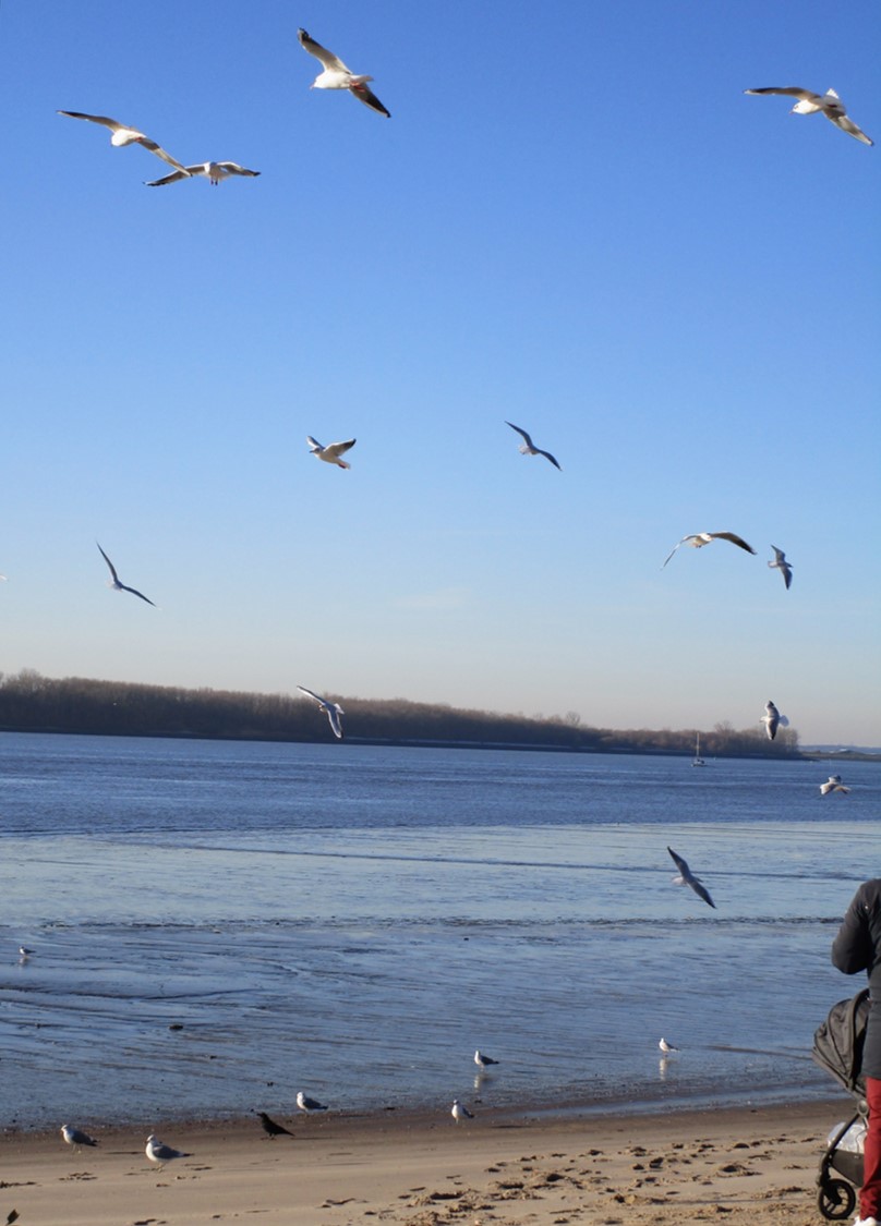 Schulauer Hafen, Wedel – Sonntag Morgen, von Möwen umschwirrt.